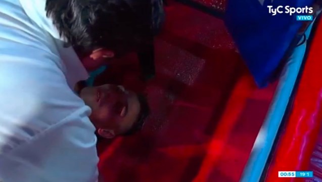 Las imágenes muestran cómo el joven no reacciona y se empieza a generar alarma por su salud. Aunque intentan reanimarlo, no lo consiguen y lo tienen que sacar del Club Atlético San Nicolás en una camilla con oxígeno.