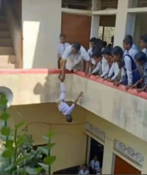Un maestro de la India castigó a un alumno de apenas cinco años de una manera terrorífica: lo sujetó boca abajo de una pierna durante varios minutos desde un balcón.