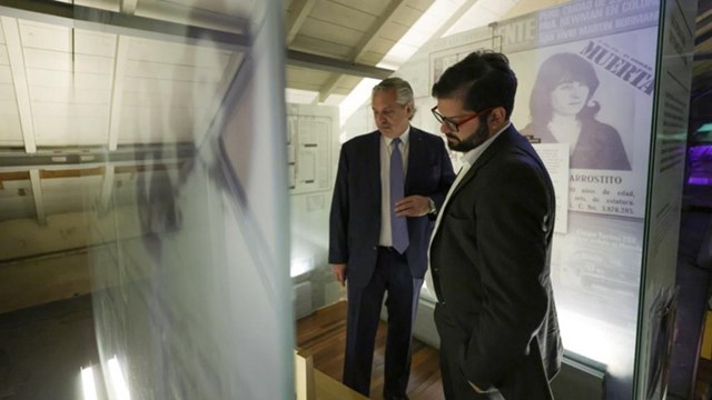 El presidente Alberto Fernández y su par de Chile, Gabriel Boric, recorrieron el Museo Sitio de Memoria ESMA, donde se reunieron con representantes de organismos de derechos humanos y con sobrevivientes del excentro clandestino de detención montado por la última dictadura cívico- militar.